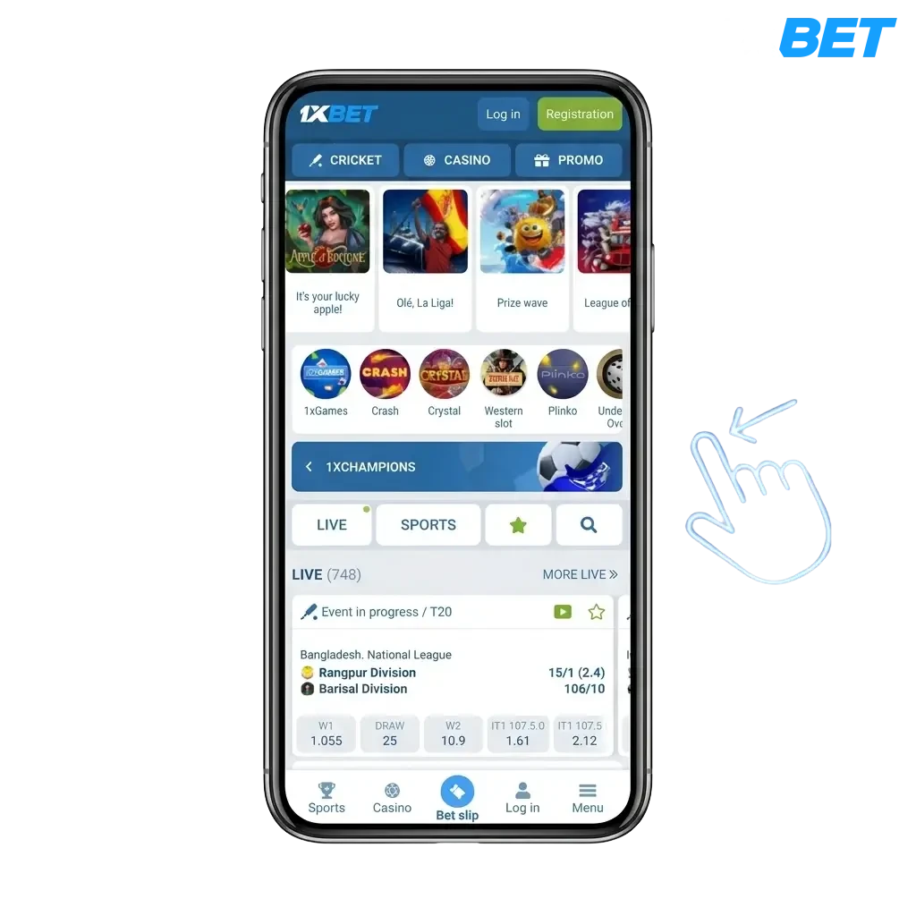 Open the official 1xbet website or navigate to this page and tap the download button.