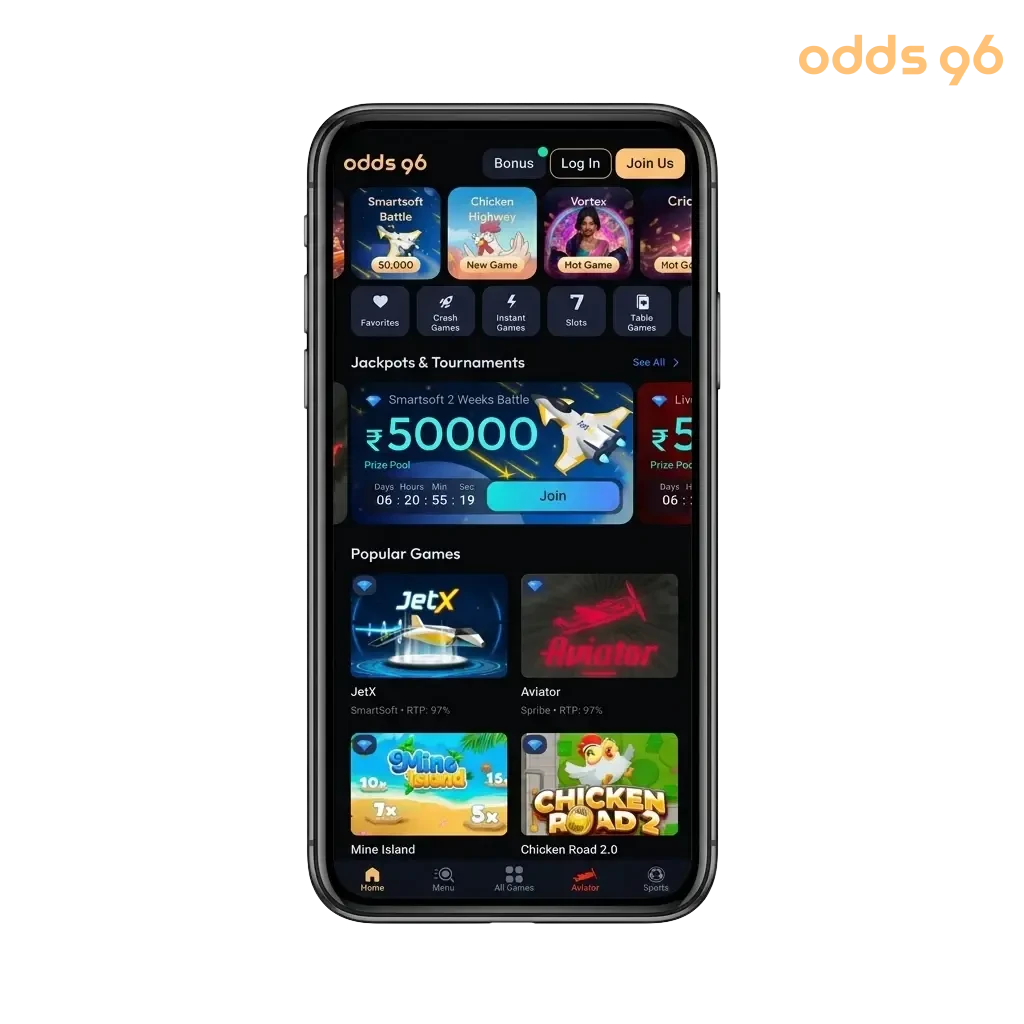 Enter the promo code ODDS96BONUS during registration in the designated promo code field, or add it later via the “Bonuses” section inside the app, to receive extra value on your Aviator deposits.